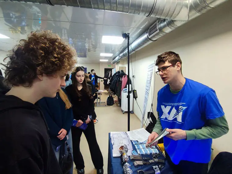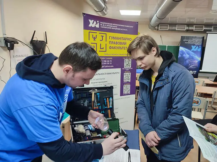 Авіація, космос та інженерія: старшокласники побачили модельний турбореактивний двигун, макет Rolls-Royce Trent 900 у розрізі, а також дізналися, як працює двигун Стірлінга з генератором. Вони випробували авіасимулятор, дослідили стенд керування рульовими поверхнями ЛА типу «Безхвостка» та знайомилися з лабораторною моделлю супутника CubeSAT.