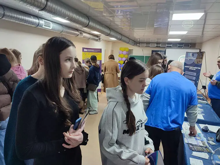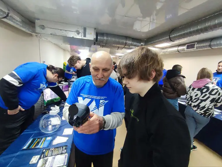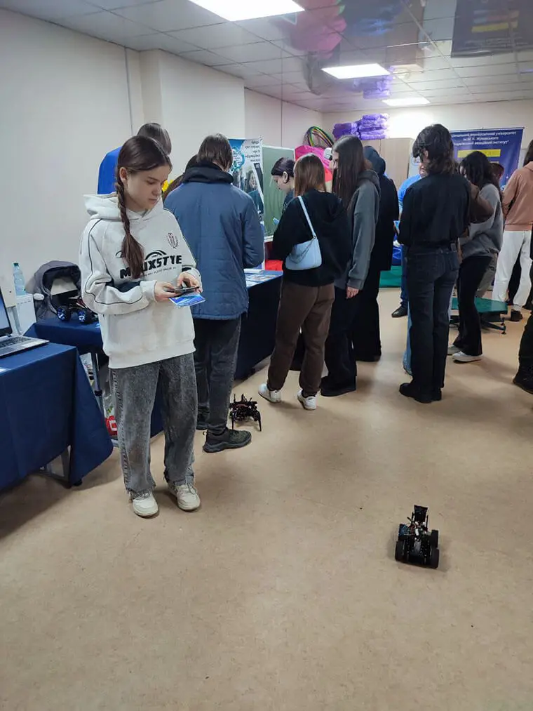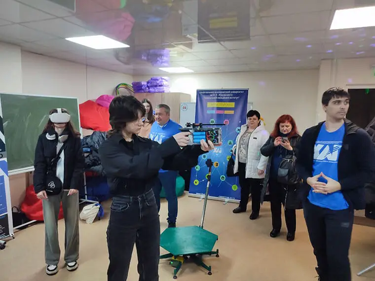 Передові технології та наукові відкриття: учні випробували 3D-сканер, голографічний проектор, біонічні роботи, AR-живопис, VR-окуляри та дослідили стенд-демонстратор роботи нейромережі. Також вони ознайомилися з портативним ультразвуковим пеленгатором та перевірили в дії квадрокоптер.