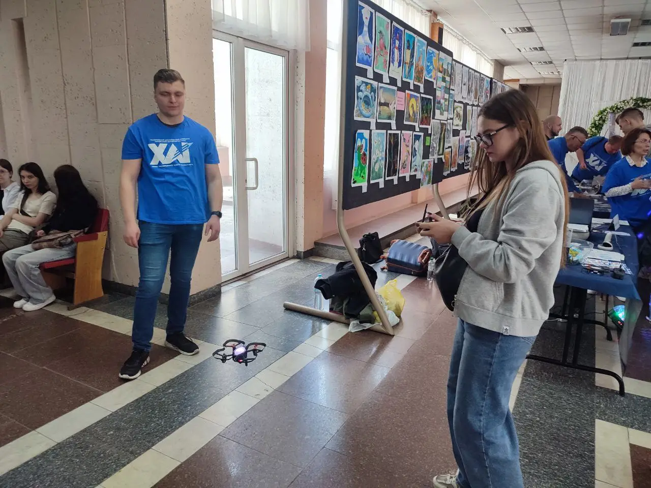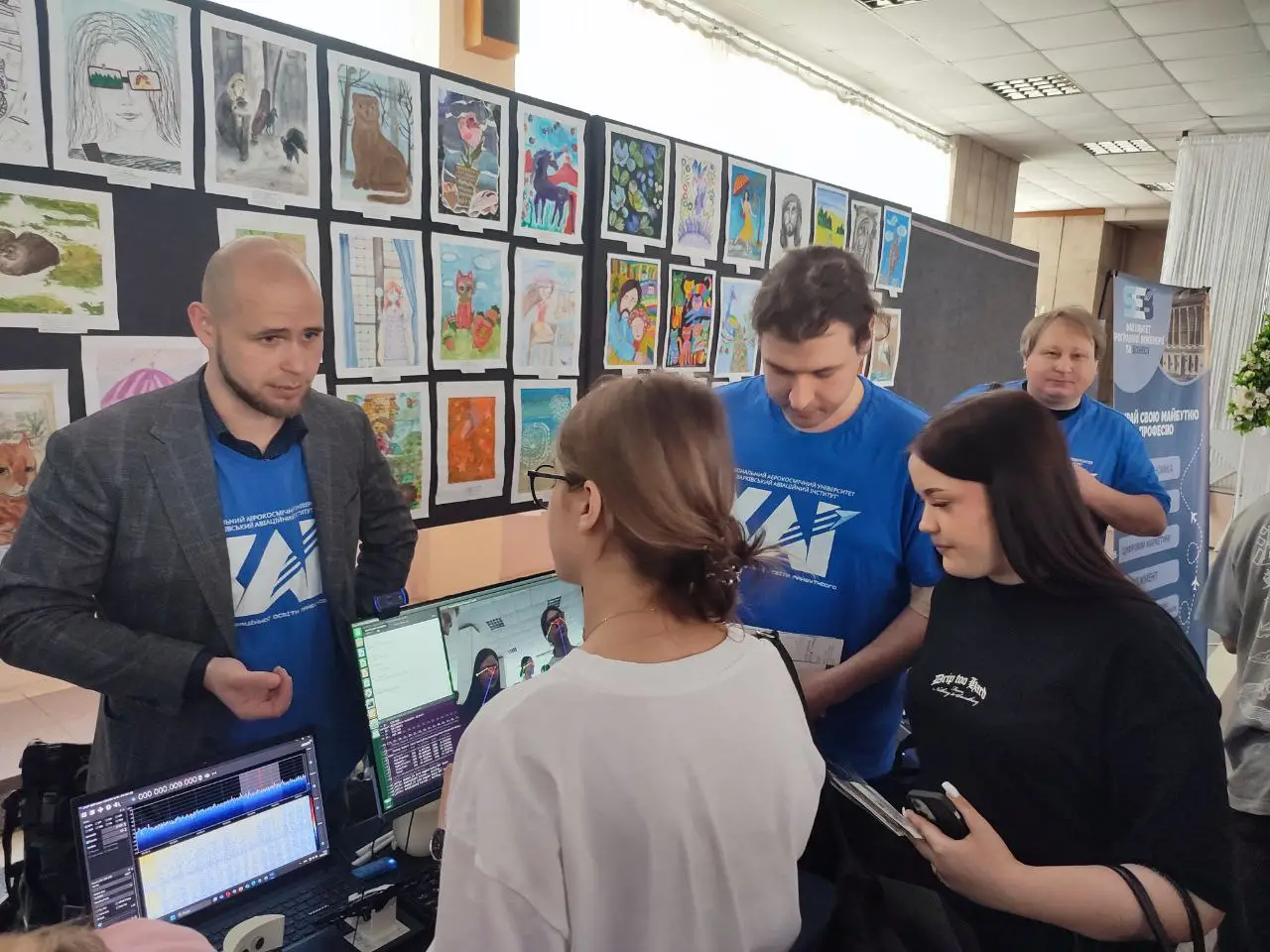 Авіація та космос: модельний турбореактивний двигун, макет двигуна Rolls-Royce Trent 900 у розрізі з обертанням вузлів вентилятора, стенд керування рульовими поверхнями ЛА типу «Безхвостка», ракета, БПЛА в захисній оболонці, програмовані дрони DJI Tello, лабораторна модель з функціями реального супутника CubeSAT, двигуни маршовий та корегувальний, демонстрація прийому даних погодного супутника, авіасимулятор.