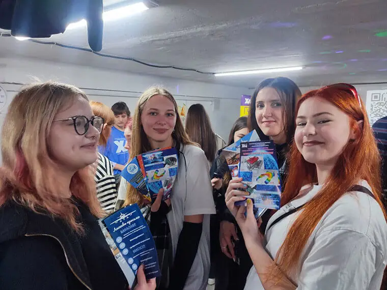 Це перший з початку повномасштабного вторгнення РФ захід ХАІ в Сумській області, який пройшов у захищеному просторі Ліцею №1 Тростянецької міської ради. Його відвідали близько 100 старшокласників із трьох найбільших навчальних закладів міста.