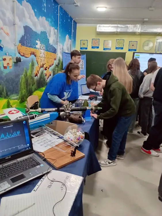 Зустріч із викладачами та науковцями університету відбулася в підземній школі ліцею №152. Тут зібралися понад 70 учнів із п’яти найбільших ліцеїв району — щоб побачити науку не в підручниках, а наживо.