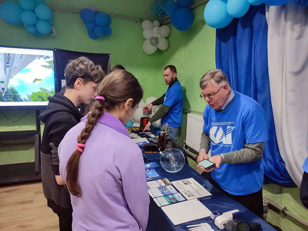Школярі знайомилися з моделлю літального апарата, моделями газотурбінних двигунів, деталями лопаткових машин і роботою 3D-проєктора. Вони працювали з мікрометром і мікроскопом, спостерігали за станцією відстежування сонця та моделлю «розумного будинку».