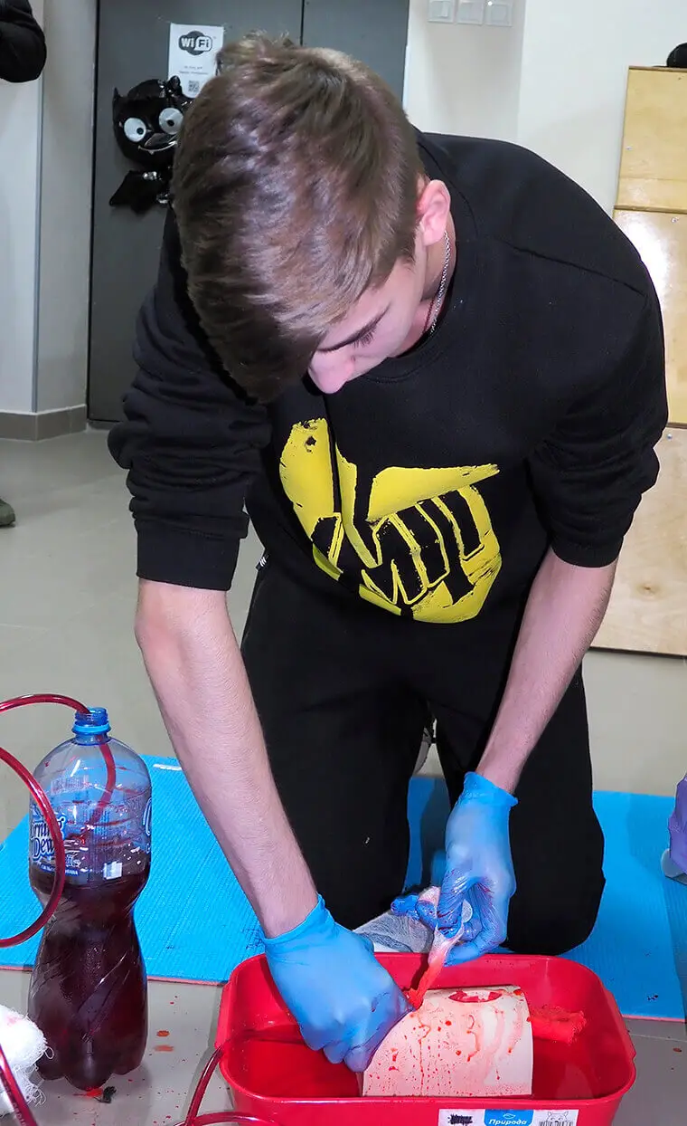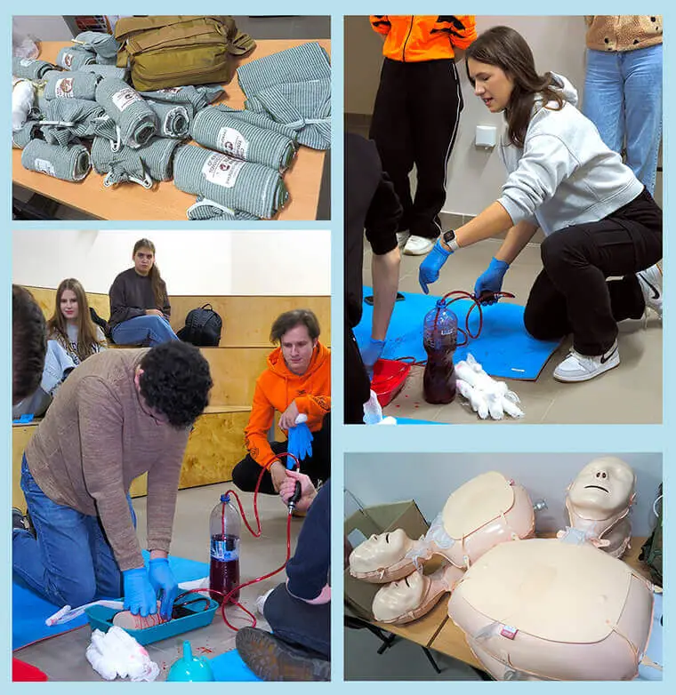 Навчання проводять члени Навчально-тренувального центру тактичної медицини Харківського національного медичного університету.