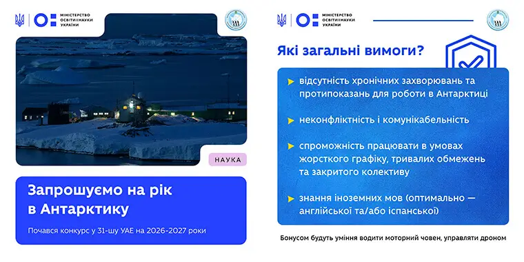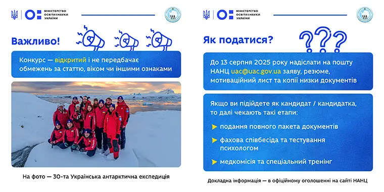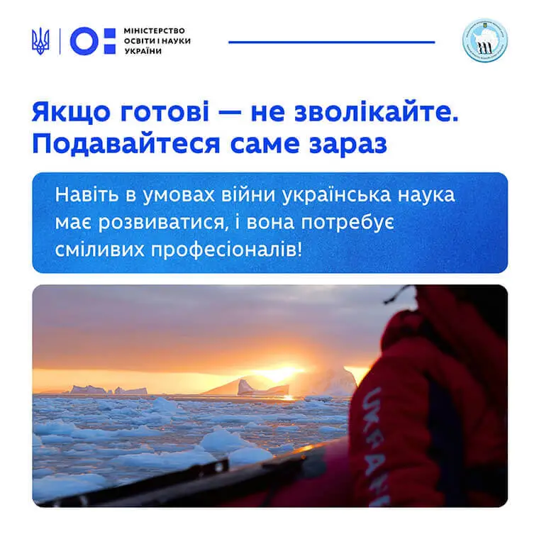 Офіційне запрошення від державної установи «Національний антарктичний науковий центр» МОН України — стати частиною 31-ї Української антарктичної експедиції.