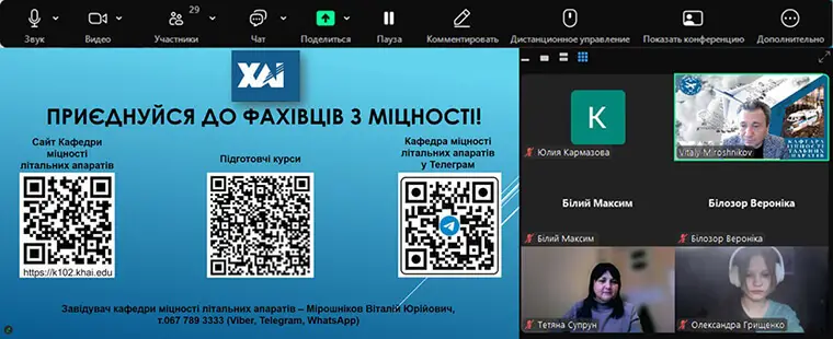 4 ГРУДНЯ кафедра МІЦНОСТІ ЛІТАЛЬНИХ АПАРАТІВ (102) Національного аерокосмічного університету ім. М. Є. Жуковського «ХАІ» та майже 30 старшокласників ЛІЦЕЮ №1 Богодухівської міської ради Богодухівського району Харківської області провели онлайн зустріч.