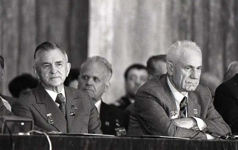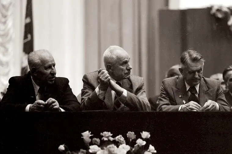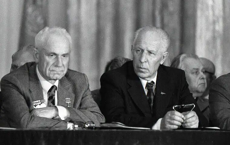Саме цей момент залишився в історії ХАІ на пам’ятних фото 1980 року, де поряд з Архипом Люлькою зображені відомі хайовці: Олег Антонов – завідувач кафедри конструкції літаків, Володимир Лотарев – випускник ХАІ 1939 року.