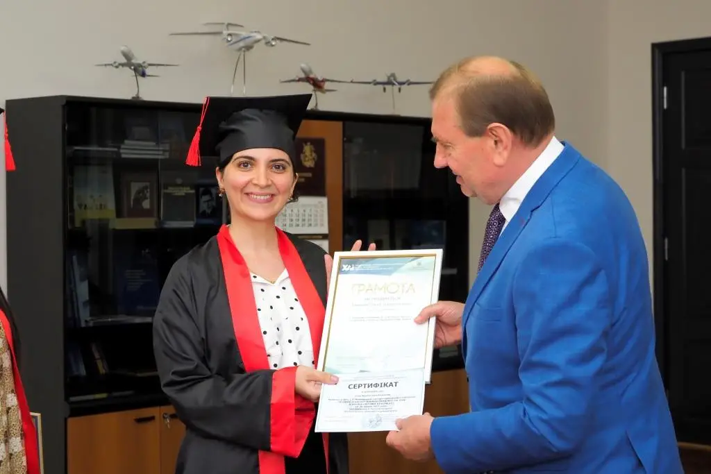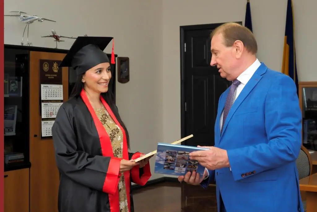 У нашому університеті за спеціальністю 081 «Право» завершили навчання перші студенти. Сьогодні, 24 червня, двох новоспечених юристів-бакалаврів – Лалу Ібрагімову й Сону Ейвазову – особисто привітав ректор Микола Нечипорук, вручивши їм грамоти за високі академічні досягнення й подарувавши два примірники нещодавно виданої книги про історію ХАІ «Підкорювачі неба». Незабаром дівчата повернуться до Азербайджану.