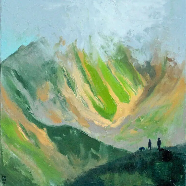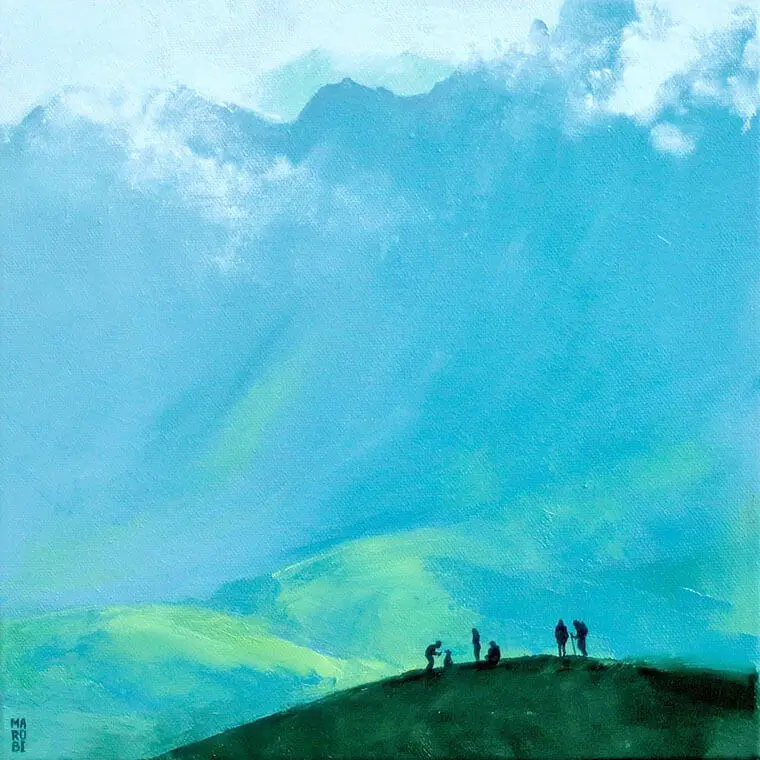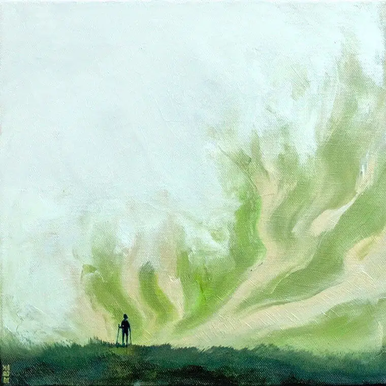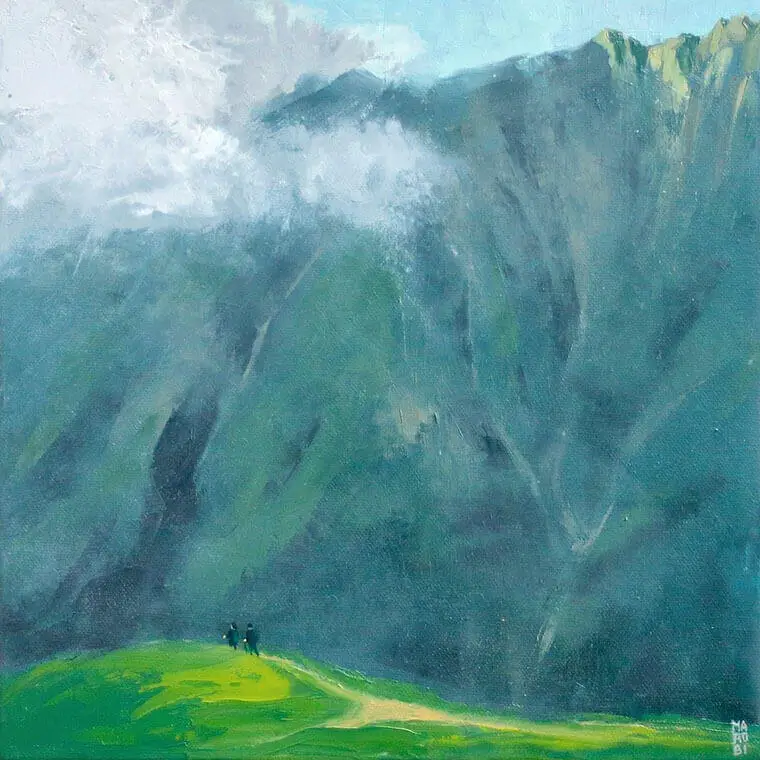 Ця серія зображає контраст між масштабом природи та людиною, наголошуючи на тому, як величність навколишнього світу може викликати відчуття затишку та безпеки. Кожна картина зображує силуети людей на тлі величних альпійських пейзажів, підкреслюючи взаємозв'язок людини та природи.