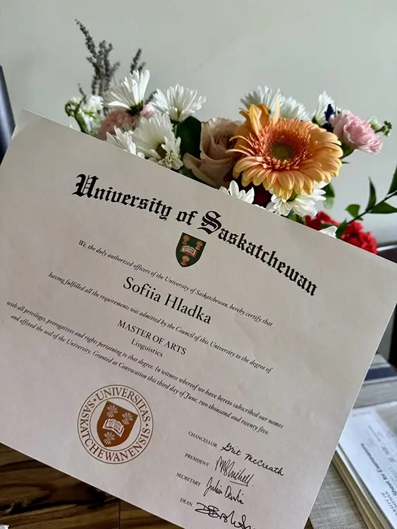 Пишаємося нашими! Випускниця кафедри прикладної лінгвістики ХАІ 2023 року Софія Гладка підкорює освітні й професійні вершини в Канаді.