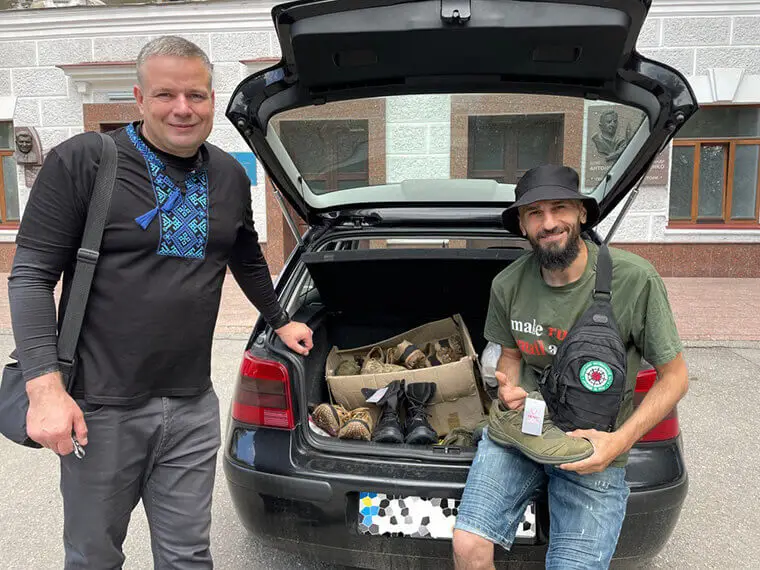 У фіналі зустрічі завідувач лабораторії кафедри фізичного виховання, спорту та реабілітації ХАІ Денис КУРЦЕВ — волонтер і людина з великим серцем, який багато років опікується дітками-сиротами, вручив керівнику пошуково-рятувального загону 14 комплектів тактичного взуття для волонтерської команди «Троянда на руці».