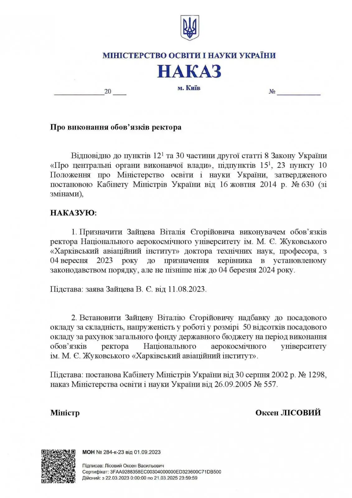 Пан Віталій має великий досвід у галузі авіації та космонавтики і протягом багатьох років працював у Національному аерокосмічному університеті «ХАІ», майже 4 роки працював на посаді ректора Приватного закладу вищої освіти.