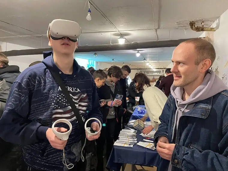 Під час зустрічі були представлені такі експонати: 3D сканер, демонстрація програмного забезпечення та використання VR окулярів на ноутбуці, пірометр, 3D окуляри, міні-жучок, модель робота на гусеничному шасі, маніпулятор з захватним пристроєм для переміщення об'єктів, робот, який може рухатися в обмеженому просторі, обмеженому лінією, а також гра-тест "Аеропорт-митниця-волонтери".