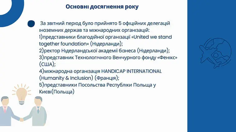 Нижче ділимося з вами результатами і досягненнями в міжнародній діяльності за минулий рік.