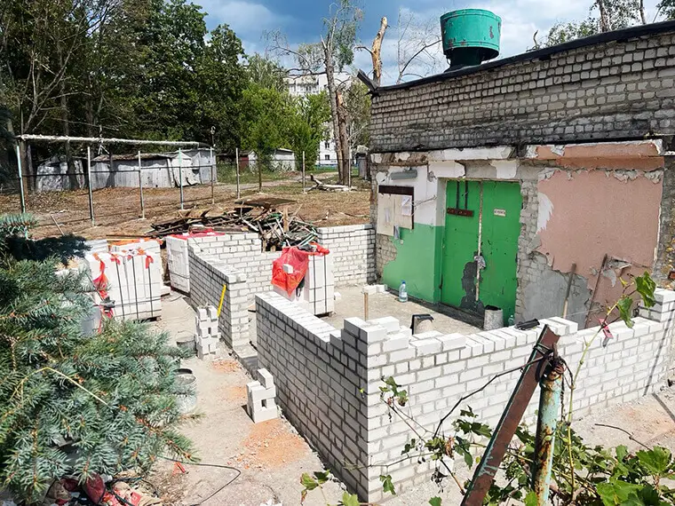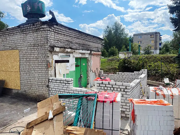 Минуло 10 днів. І на місці руїн насосної станції вже зростає нова стіна. Ряди цегли чекають на руки майстрів. Без пафосу, без камер, без гучних слів — просто робота.