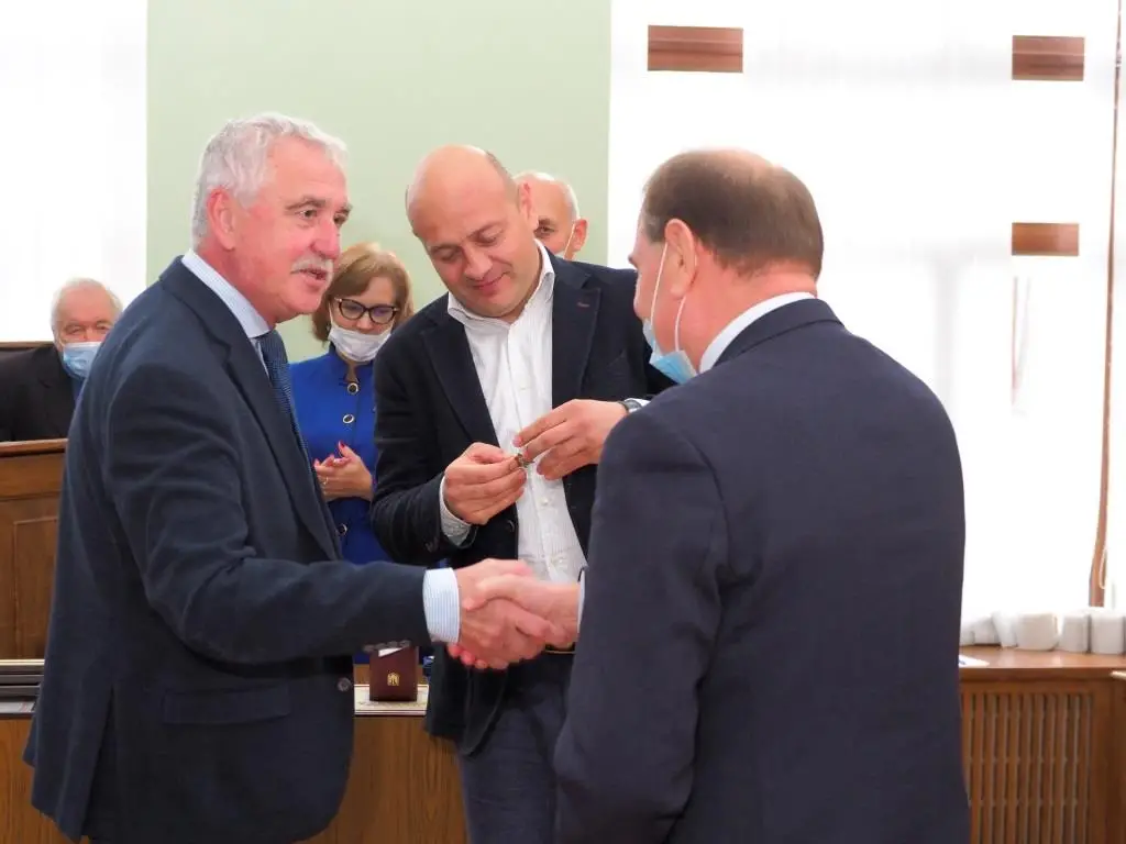 На початку планового засідання вченої ради відбувся каскад нагороджень – приємних і заслужених. Урочисту церемонію проводили в. о. голови Харківської обласної державної адміністрації Олександр Скакун, екс-заступник голови ХОДА Євгеній Грицьков і ректор ХАІ Микола Нечипорук.