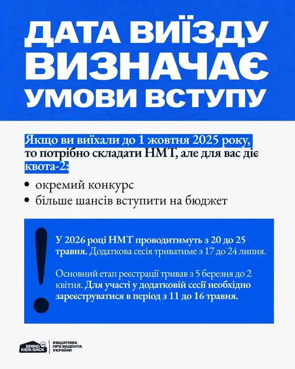 Якщо ви досі перебуваєте на ТОТ або виїхали після 1 жовтня 2025 року — вступ можливий без НМТ, через співбесіду в університеті. Якщо виїзд був раніше — потрібні результати НМТ, але діє квота-2.