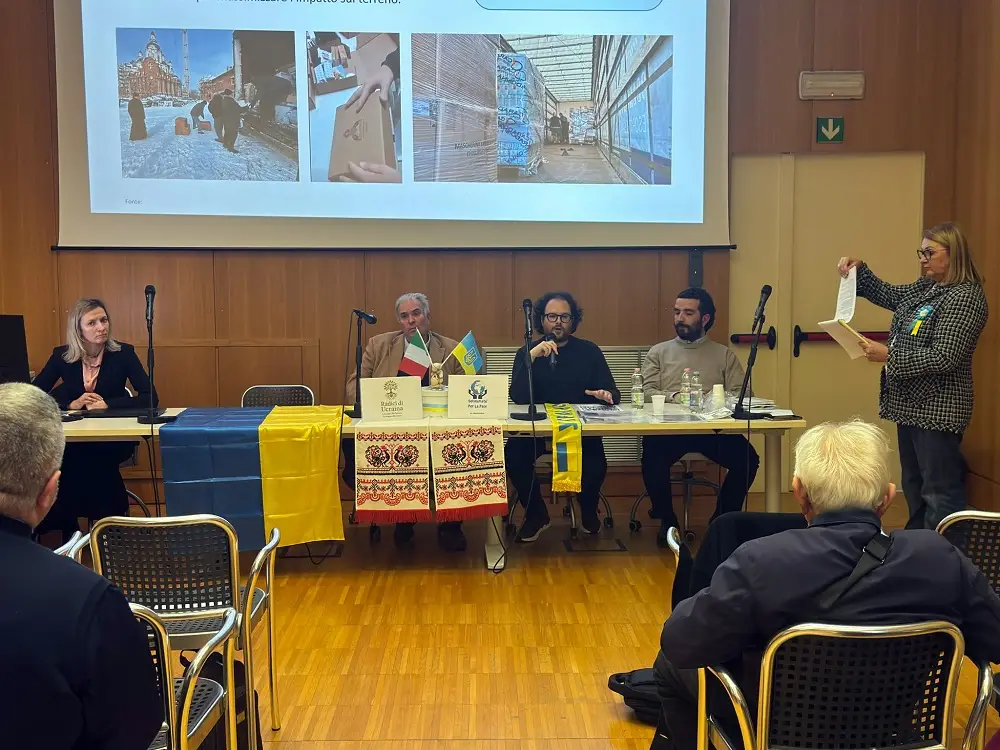 Почесну місію передання подарунка виконала доцентка кафедри інформаційних технологій проєктування, докторантка Національної програми PhD Autonomous Systems Ольга ПОГУДІНА. Вона особисто передала видання віцеректору Політехніки Барі — професору Мікеле Руті (Michele Ruta).