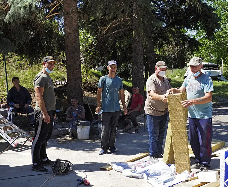 Розпаковано утеплювач — незабаром він вкриє стіни і нова споруда буде значно теплішою й комфортнішою, ніж та, що зруйнував ворожий КАБ.