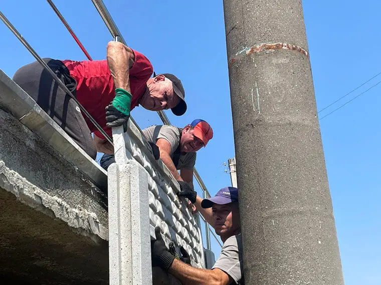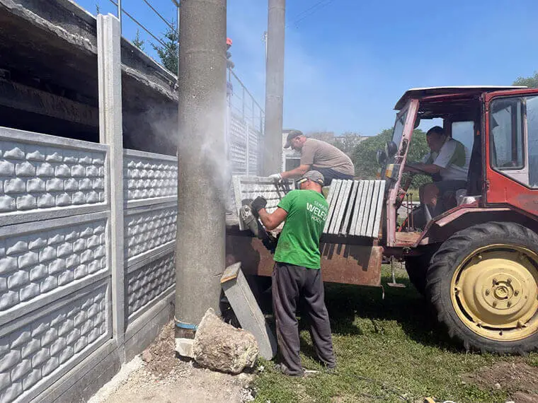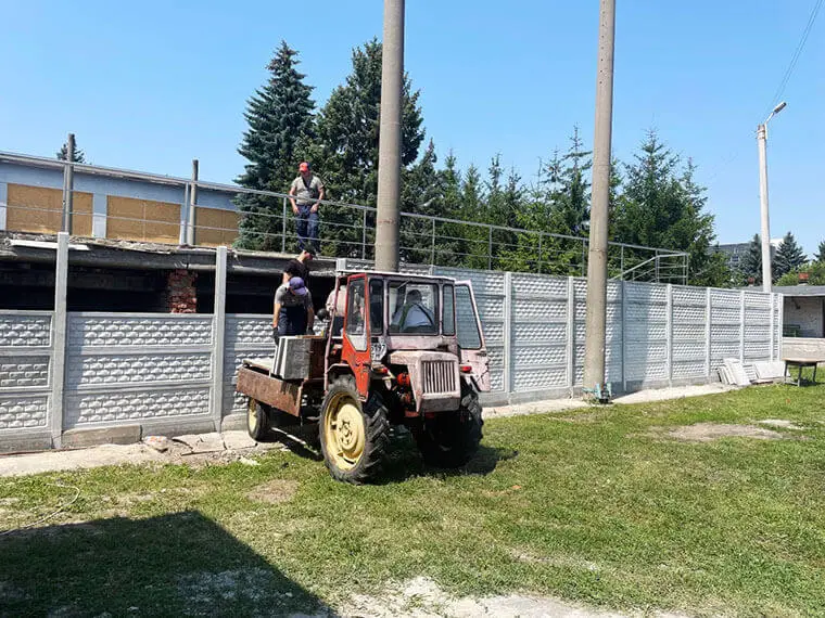 Попри спеку — кипить робота. Сильні, дбайливі руки співробітників університету встановлюють нові плити огорожі спортивного комплексу.