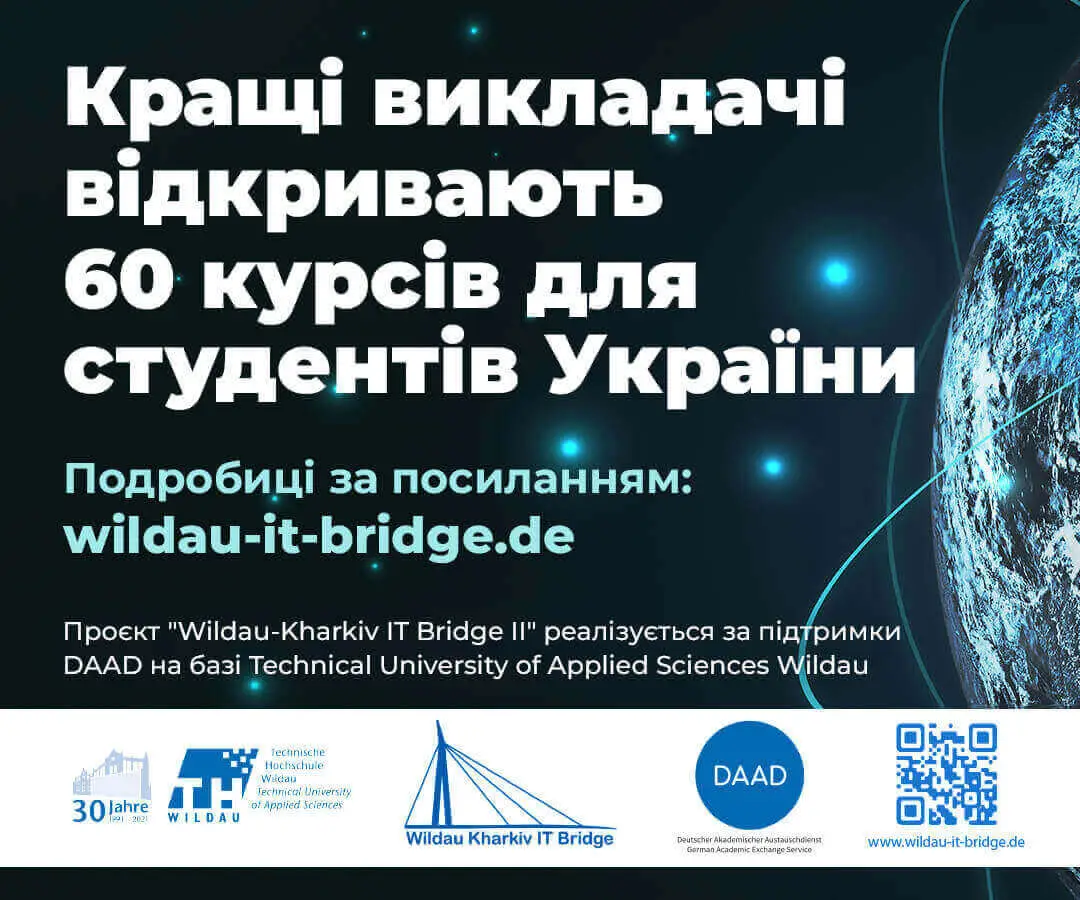 Проєкт «Wildau-Kharkiv IT Bridge» організований Німецькою службою академічних обмінів DAAD та Технічним університетом прикладних наук Вільдау (Німеччина) у межах програми «Ukraine digital: Ensuring academic success in times of crisis», яка спрямована на підтримку українських вищих навчальних закладів у впровадженні віртуальних курсів. Українські студенти мають перспективу завершити навчання, незважаючи на обмеження, викликані війною. Німецькі університети пропонують віртуальну платформу для українських студентів-біженців, щоб вони могли онлайн продовжити та завершити своє поточне навчання в Україні. Залучення до цієї платформи українських вчених/дослідників та викладачів, які перебувають у Німеччині чи інших європейських країнах, дозволяє їм продовжити викладання практично, як у своїх рідних вишах. Тому заняття навіть з-за кордону можуть проводитися і національною мовою.
