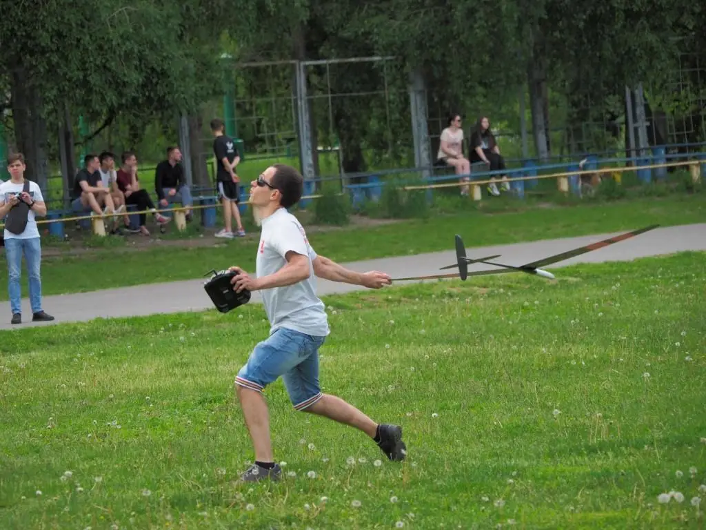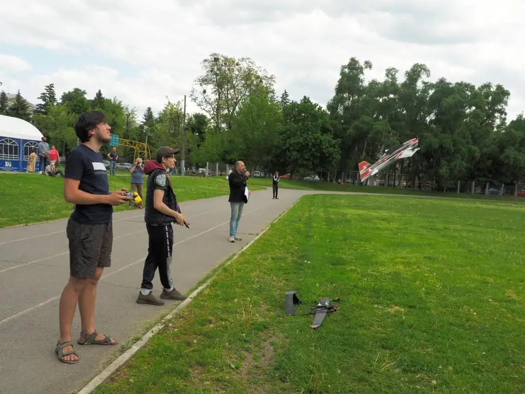 Після цього виступили спортсмени з метальними радіокерованими планерами F3K, найбільш популярним сьогодні класом моделей. До них долучилися студенти з авіаракетомодельного гуртка лабораторії зі своїми «птахами», а також члени команди ХАІ з дрон-рейсингу, які керували маленькими «металевими блискавками» за допомогою окулярів FPV.