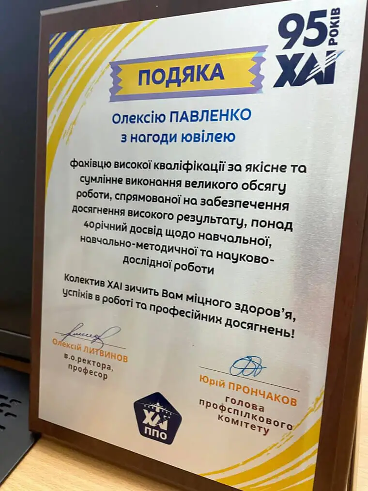 Сьогодні під час засідання ректорату дружна аерокосмічна родина ХАІ привітала з ЮВІЛЕЄМ людину, яка присвятила нашому університету понад 40 років — доцента кафедри технології виробництва літальних апаратів Олексія Павленка.