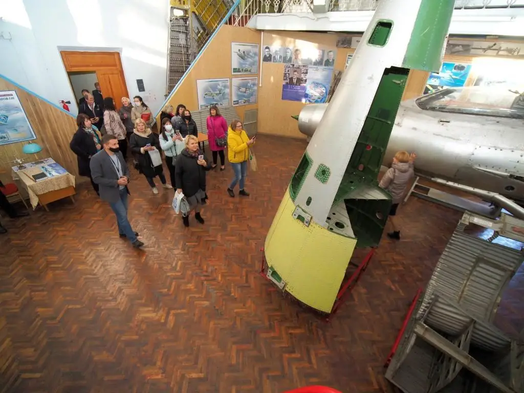 Наразі відкриваємо для себе дива Слобожанщини. У понеділок ми відвідали музей у селі Сковородинівка, учора побували в Шарівці, міському Саду Шевченка й зоопарку. Сьогодні урочисто відкрили конференцію в обласній МАН і приїхали до славетного аерокосмічного вишу. Хочемо побачити, що тут є цікавого, почути, як «живе й відчуває себе» освіта з ноу-хау й інноваціями. Можливо… запозичити якісь напрацювання, щоб самостійно не винаходити колесо!» – жартуючи розповів про подію президент ВГУ Ярослав Турянський.