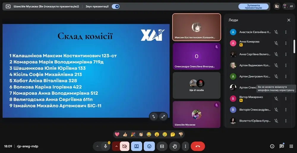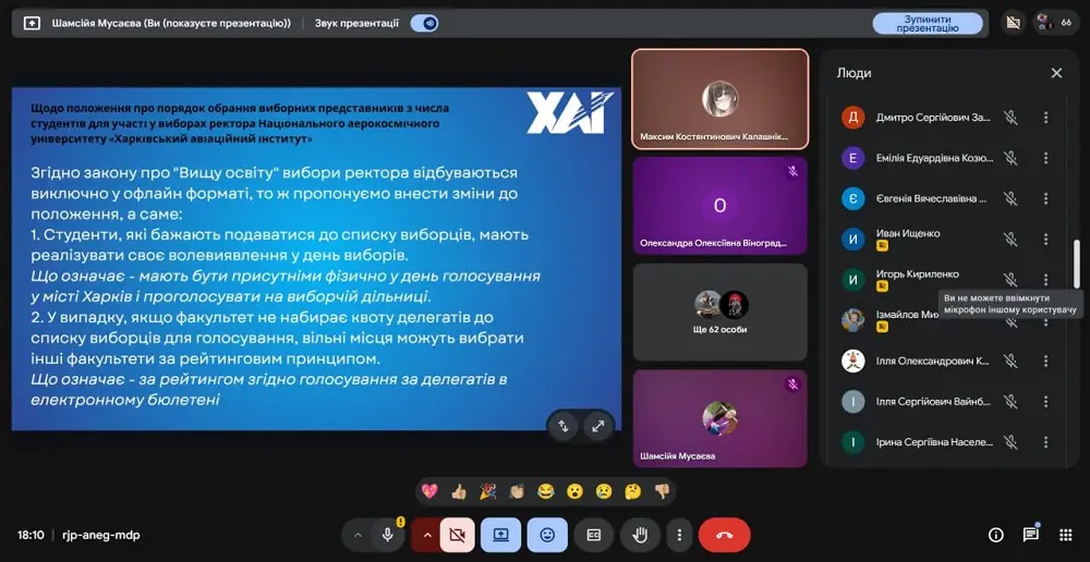 1. Затвердження представників виборчого комітету з числа студентів для участі у виборах ректора Національного аерокосмічного університету «Харківський авіаційний інститут».