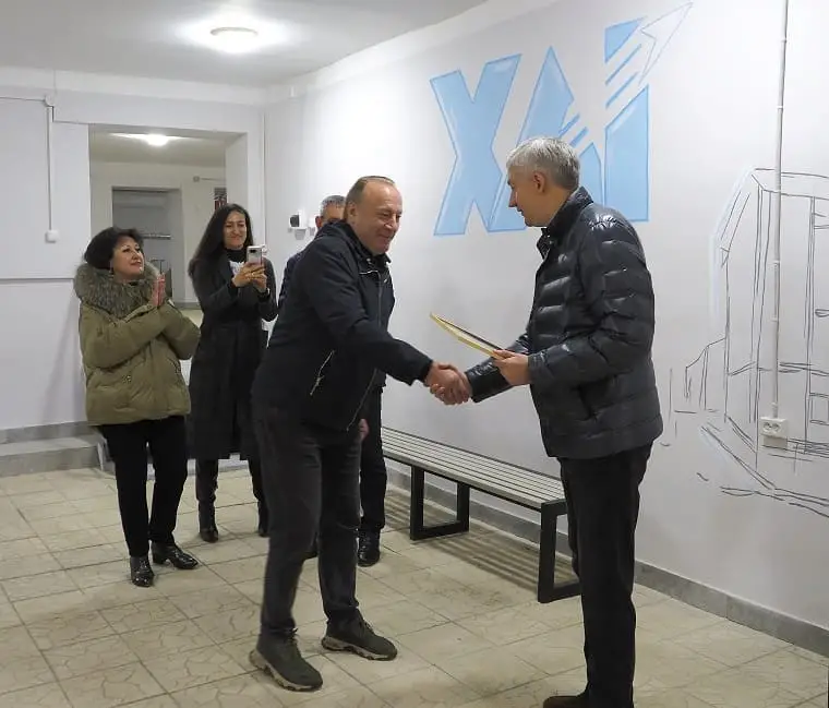 І вже незабаром роботи розпочалися в укриттях ГУРТОЖИТКУ ХАІ-12, де мешкають сотні переселенців із харківського прикордоння.
