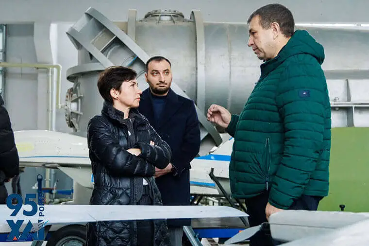 Візит продовжився в аеродинамічному комплексі Національного аерокосмічного університету, де відбулося знайомство з науковою школою ХАІ, спілкування з викладачами на науковцями.