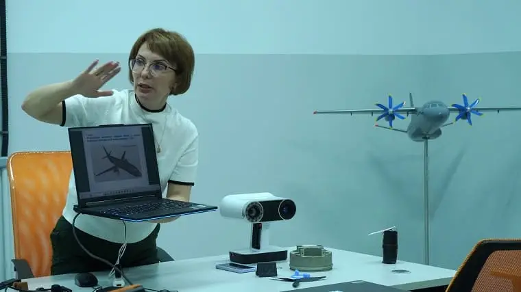 Завідувачка кафедри технології виробництва літальних апаратів (№104) доцентка Катерина Майорова проводить для студентів заняття з дисципліни «Вступ до фаху».