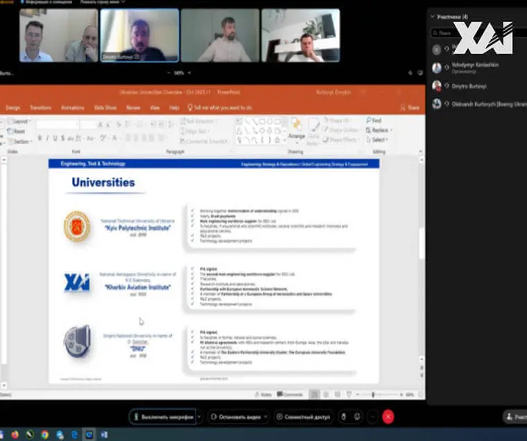 Вже сформовано попередні уявлення щодо розширення взаємодії за дуальною формою здобуття освіти та обговорено можливості отримання грантової підтримки наукової діяльності ХАІ. Безумовно, деталізація робіт буде визначатися у процесі наступних нарад, що будуть присвячені окремим напрямкам співпраці, але було закладено фундамент стратегічного партнерства між Boeing та ХАІ.
