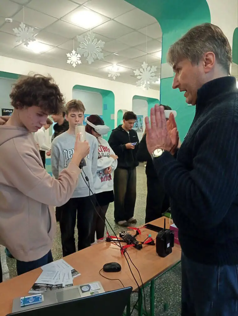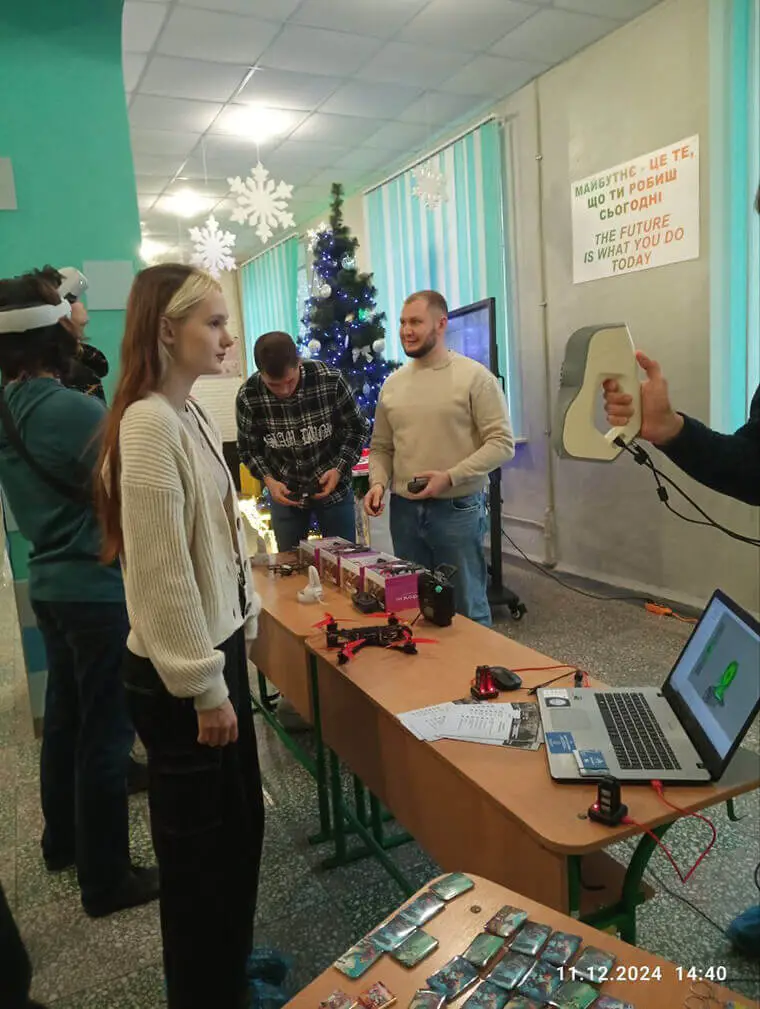 А тим часом старшокласники мали змогу зануритися у віртуальну реальність; отримали 3D-портрет, створений за допомогою професійного 3D-сканера; керувати різними коптерами; дізнатися як вони можуть сприяти покращенню екологічної безпеки, опанувати дозиметр, вимірювач рівня шуму та люксметр.