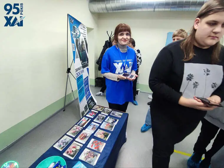 Експонати ХАІ традиційно вражали різноманітністю: 3D-cканер, модель-демонстратор навантажень на крило літака, лопатки парової турбіни, лопатка компресора та турбіни двигуна-велетня Д18Т, поршень двигуна, робоче колесо відцентрового компресора, міні-жучок, робот-сумоїст, який їздить по лінії або в обмеженому контурі, машинка-конструктор, яка відслідковує перед собою перешкоди.