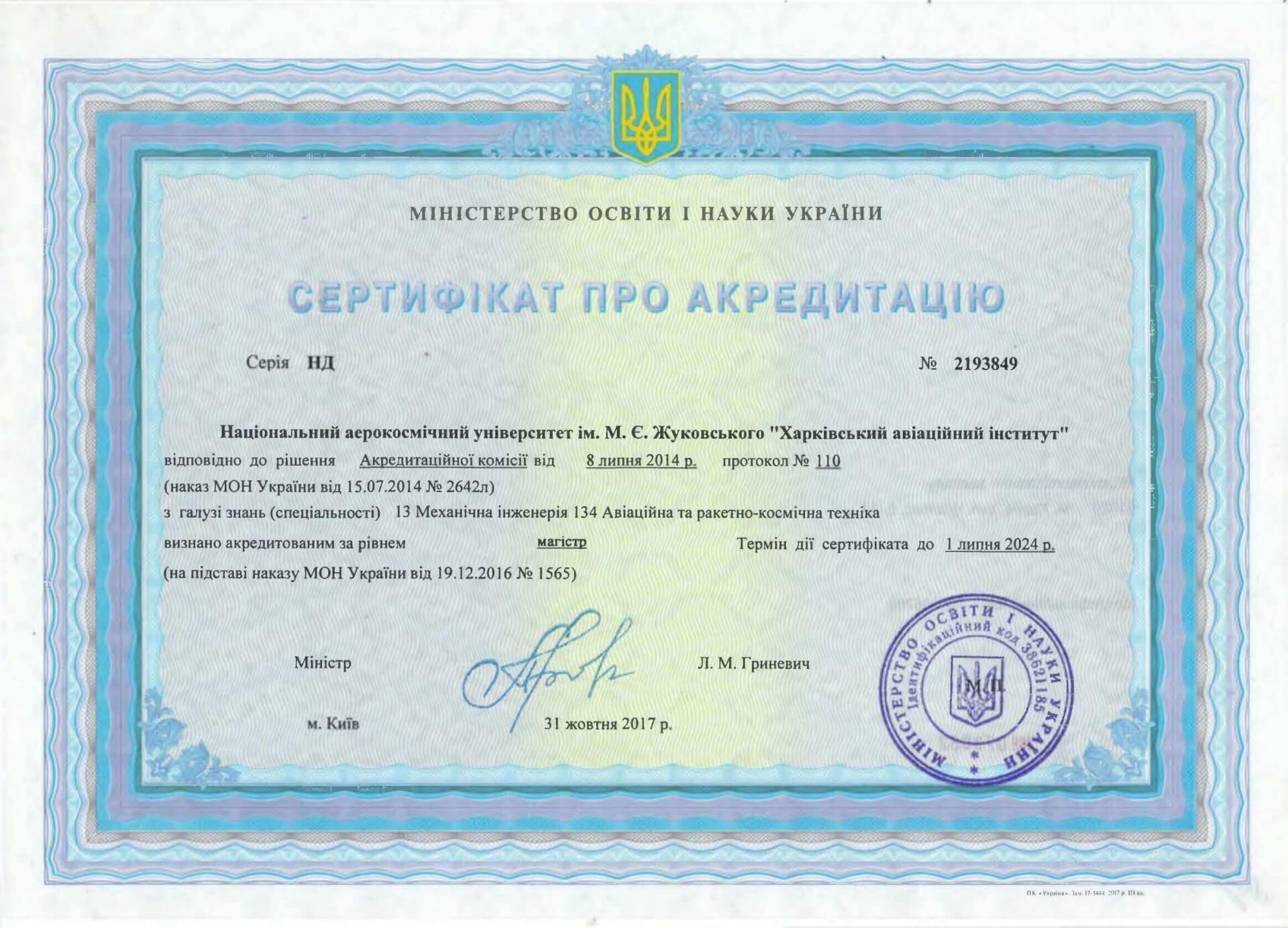 Кваліфікація: магістр з авіаційної та ракетно-космічної техніки