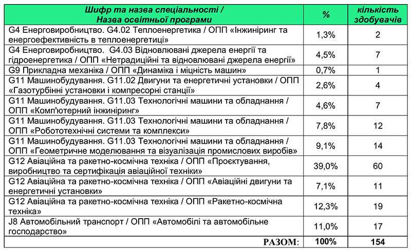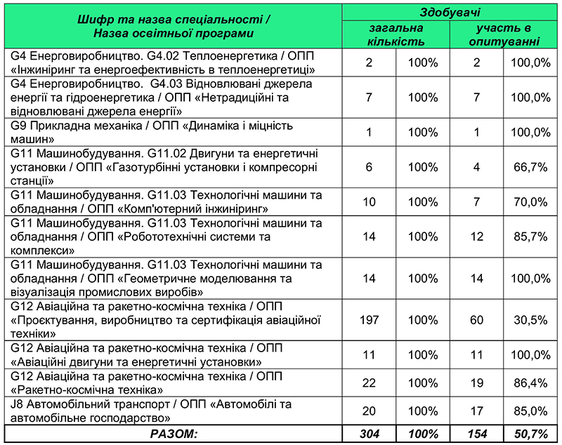 Пройшли опитування від загального обсягу здобувачів за освітніми програмами: