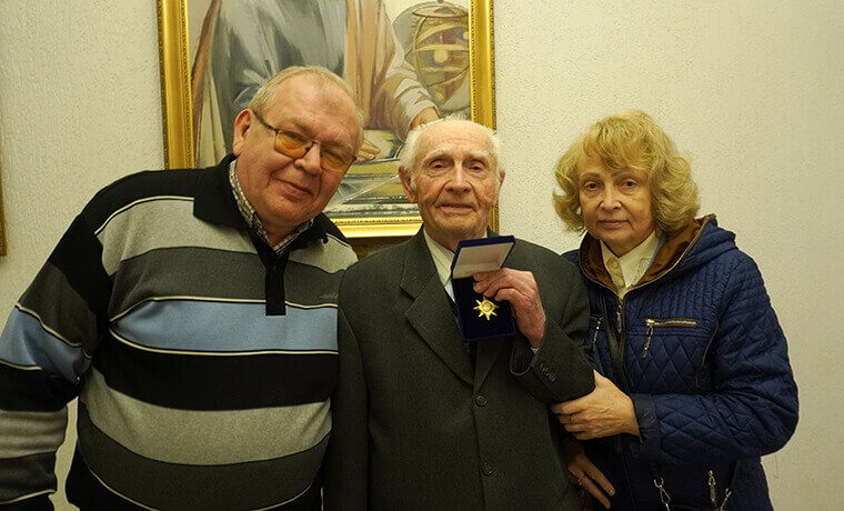 Нагороду ветеранові урочисто вручив в.о. ректора Олексій ЛИТВИНОВ. Це була хвилина великої вдячності, пошани та тепла до людини, яка є живою легендою університету й справжнім харків’янином.
