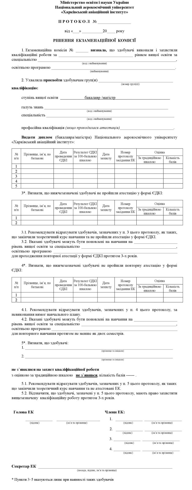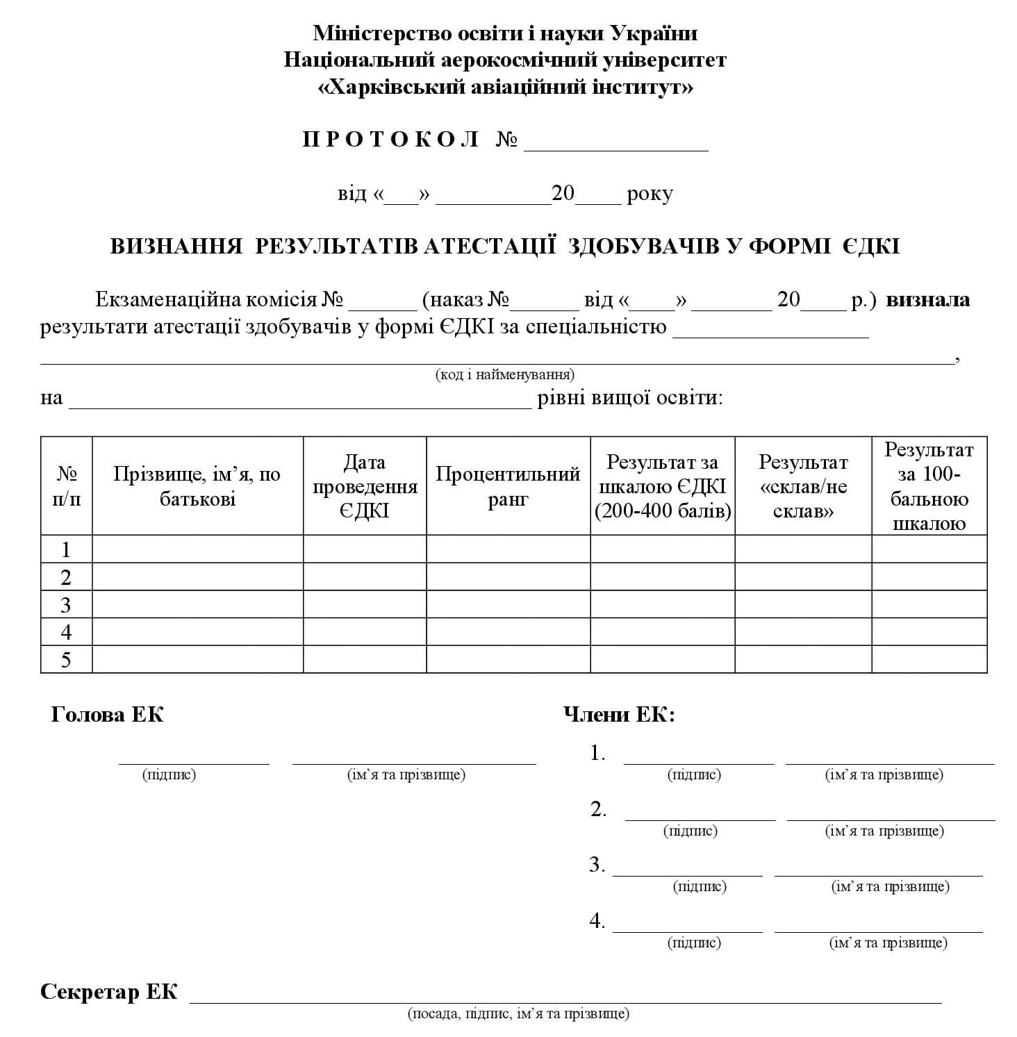 Г.2 Протокол рішення ЕК у випадку атестації здобувачів у формі ЄДКІ