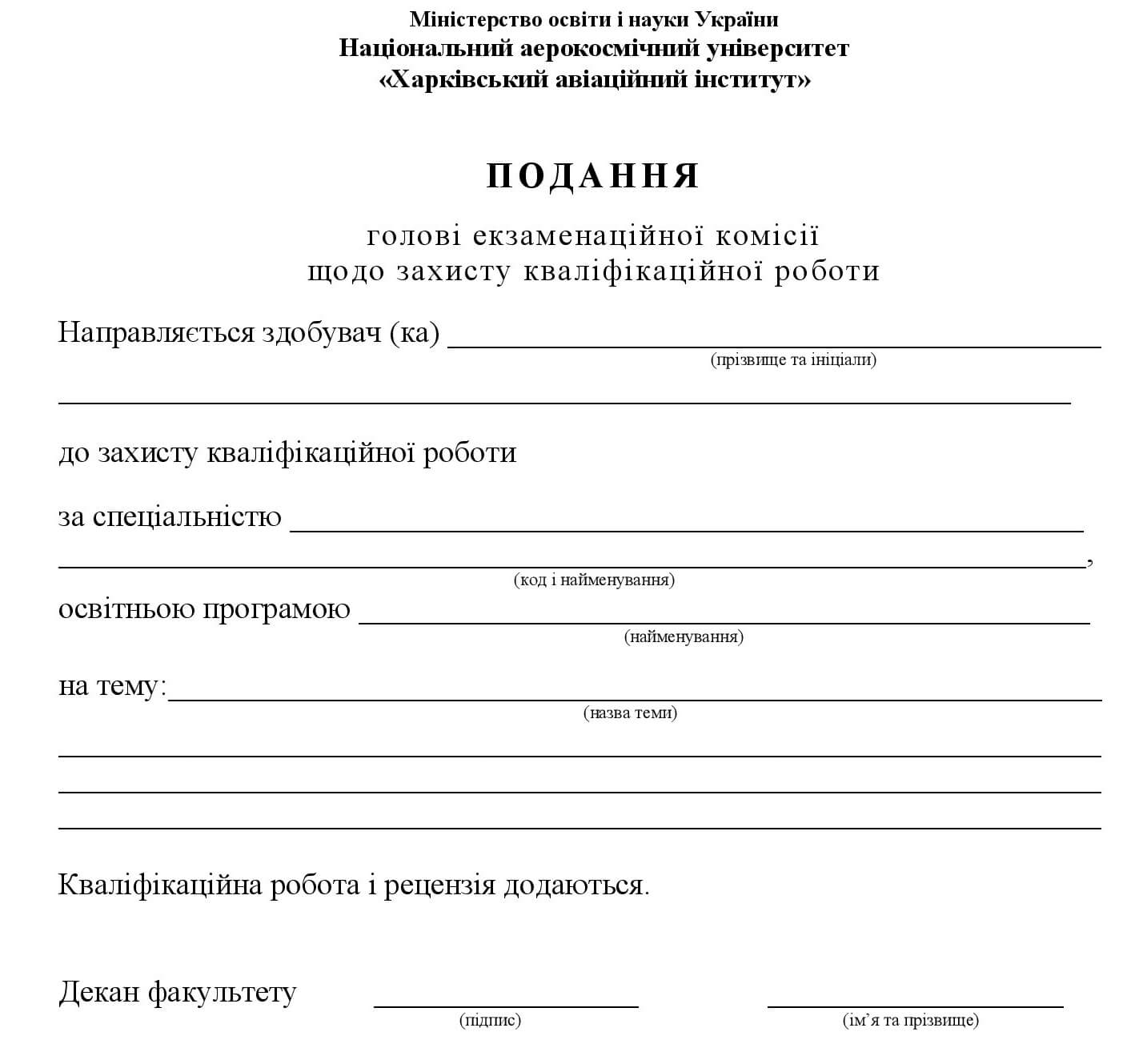 Форма подання голові ек щодо захисту кваліфікаційної роботи