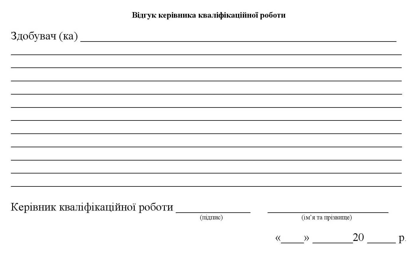 – висновок керівника роботи щодо якості виконання кваліфікаційної роботи;