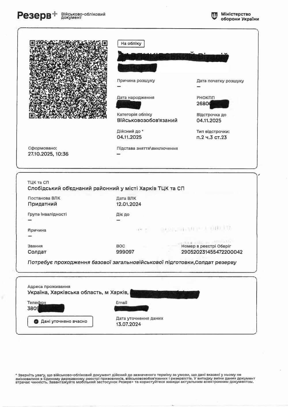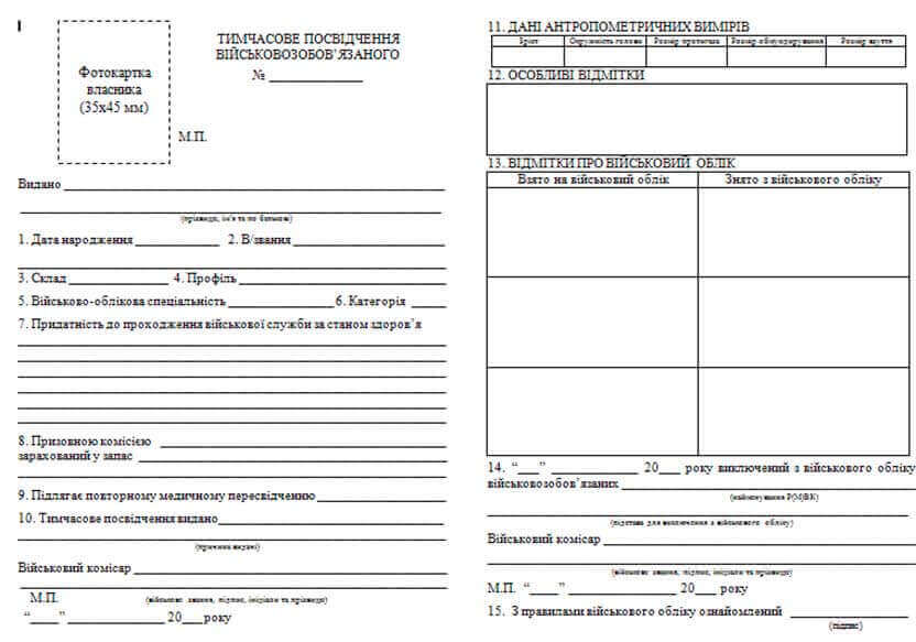 Військово-облікові документи для всіх категорій військовозобов'язаних: